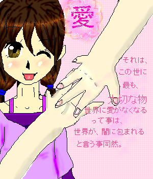 初めまして。 管理人のDragです。 色々と謝られてるけど、大丈夫! 全部分かりますよ、うん。 文字による雰囲気付けとか、 表現方法が豊かなだけでなく、 爪や頬や髪に目等から光のつけ方が上手です。 手はリアルを追求しようとはせず、 もっと気楽に描いていくと より上手にかけるかもしれません。 ホンッ――ト、もう、ありがとうございました!