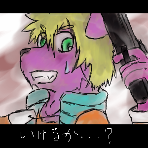 こんにちはー。 ぴんく色の犬さんと一緒に来ましたw ちょっとムービー風(?)に。 銃の表現って難しいですね。 あと金属光沢とかもですけど・・・。 何に対しての「いけるか…?」は想像で(ぇ それではー。