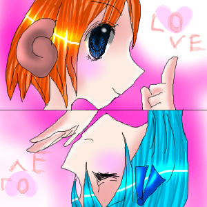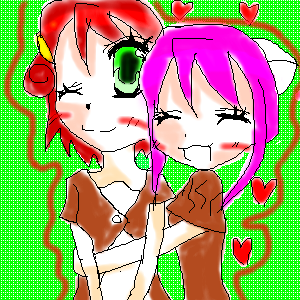 れねろ&もーもさん!!! 今日はこの2人です♪ みなさんのキャラも今度書きます! もーもさん!この絵はお持ち帰りOKです^^