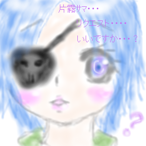 どうも、まっしーです(*´∀`*) 忙しくて、絵チャになかなか参加できなくて・・・絵チャしたくてたまりません(笑) あの・・・リクエストしてもよろしいですか・v・? ・・・・片霧さんに髑髏ちゃんを描いてホシイのです (o´Å`o) ・・・・。 お時間が空いていれば・・・ですよ><; |トビラ|・ω・)失礼しました。