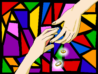 完全に漫画、無視してますね やる気がおきません 結婚式ってカンジでしょうか あの二つの小さい丸は、指輪です 肌の色は一緒ですけど気にしないでください 最初はステンドグラスの前で ライトが何かしらのポーズをとってる絵に しようと思ってたんですが なんか体全体描くのめんどくさくて(オイ 手だけにしようと思ってたら 後ろのステンドグラスと合わなくて 手をとりあう二人になってしまいました ごっちゃごちゃした背景だなー…うわ なんか最近、自分で納得できる絵が描けません ハガレンも好きなのにー!! デスノートも好きだしーーー!! でもデスノートのほうが描いてる絵は多い!! ハガレンも何か描かなきゃ…!! 私の友達に悪い でもまあ適当にやっていきます絵日記 見てくださっている方には申し訳ないですが 適当に頑張ります!!