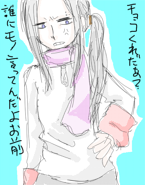 クラビーよりテルマちゃんず。 イナズマイレブンがはやってるけど敢えてクラビーで攻めてみようとしたけど下書きの時点で挫折した← なので下書きにクソみたいな塗りをしただけの痛い一枚に仕上がりました。 天使ちゃんはもはや影扱いだし悪魔ちゃんは眼鏡忘れるし。 最悪だね!
