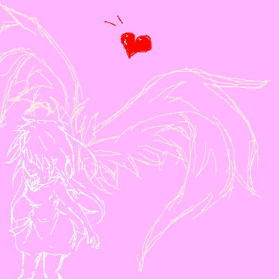 ハートなんか描いちゃって(汗)翼を描くのがスキ。 しかしこの絵になんの意味もないデス。 ハートも意味はないデス。 バレンタイン近いから?とか言ってみる(笑