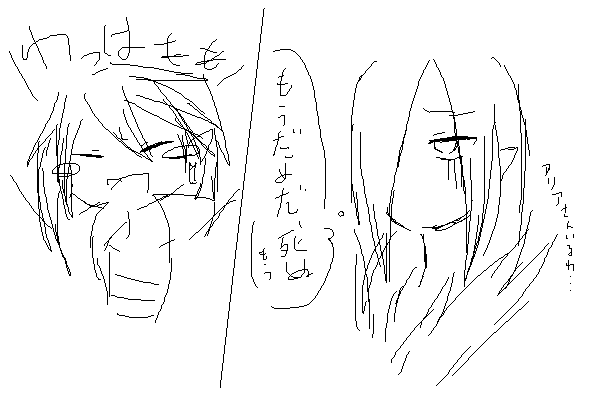 A「逃げるだなんて、本当に使えない赤いワンワンだなぁ。冷やしポッキー始めましたぁ!」 ぽっきーを少し凍らして鋭くし さてゅら君に攻撃(ただしアリアさんには喧嘩売らない