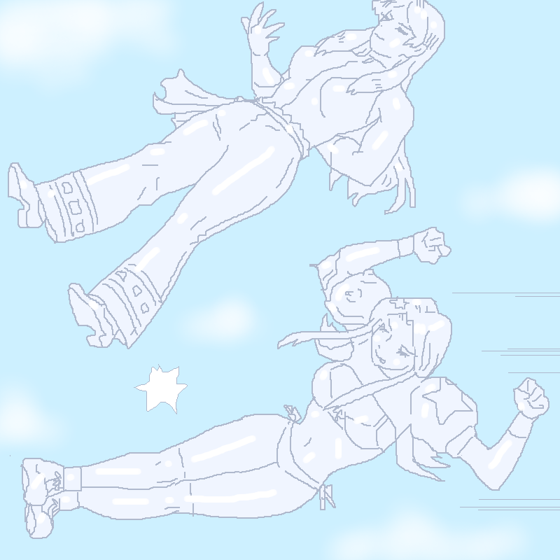 ジョン・フーンさん、プリティー・ブライアンさん、かきました! 背景が地面だとスライディング してるように見えたため、 飛び蹴りとわかりやすい背景を かきました♪