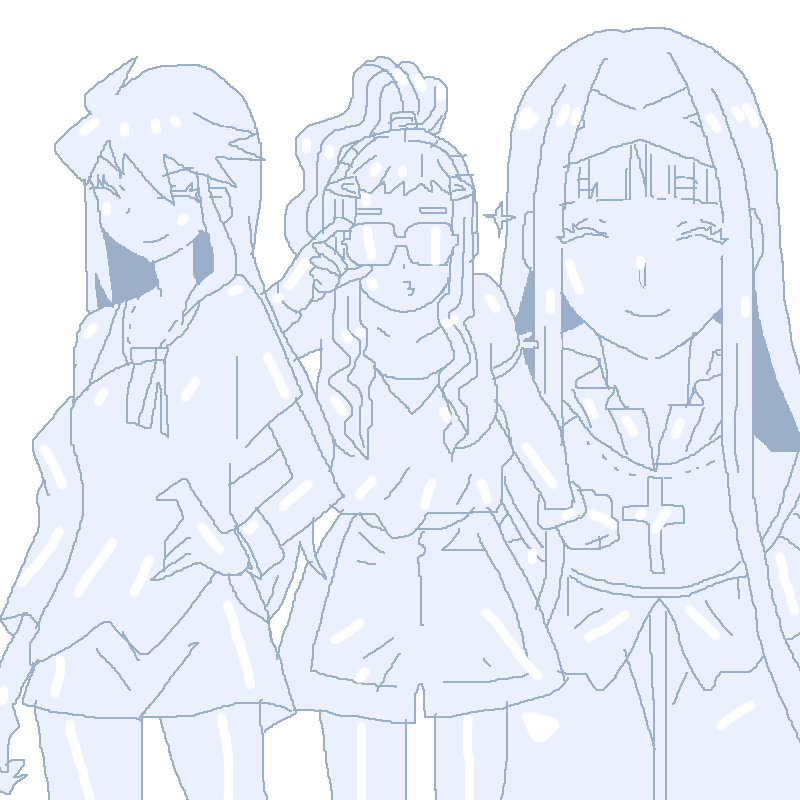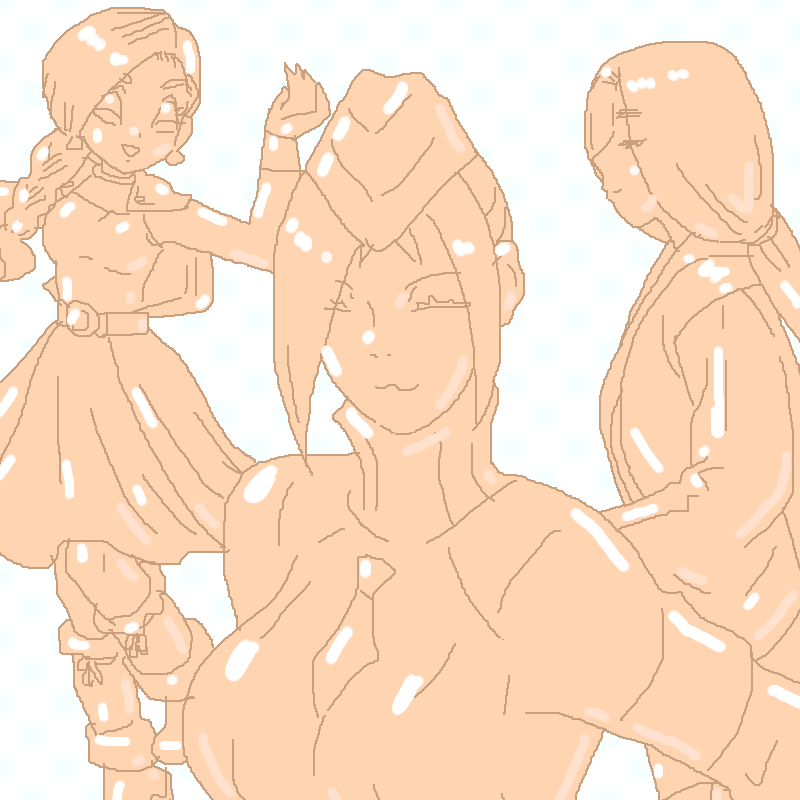 ゆうさんおはようございます♪ 全身水色のサムライスピリッツシリーズに登場するナコルルさんの形の粘土水がプルプルしていて気持ちよさそうですね♪ そうそう全身光沢が目立つマジックコート化した64風グラフィックのヒューマンバグ大学に登場する女性の岩本さんとkofシリーズに登場するクーラ•ダイアモンドさんとジークアクスに登場するマチュさんの3人をリクエストできますでしょうか? 全身光沢が目立つマジックコート化した64風グラフィックの3人はのっぺらぼうの全身アップのデフォルメで手の形は指を曲げられるミトン型ででっぱりがない部分はテクスチャー扱いの為全て省き絵のサイズは800と800でリクエストはカチコチお絵かき2のゴールド艦これ64にライブラリ登録お願いいたします♪