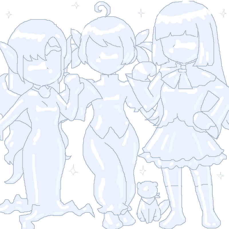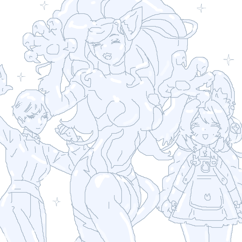 エルフィンさん、ユーニさん、巻雲さん、かきました! 頭の高さが揃うよう、 エルフィンさんと巻雲さんが ぴょんぴょんしてる図です♪
