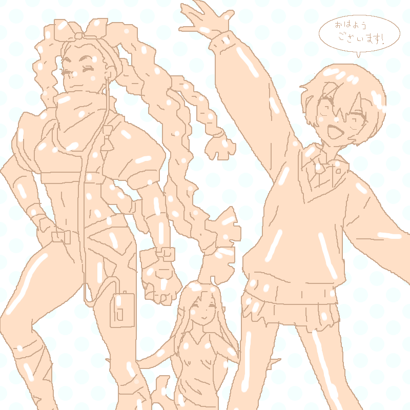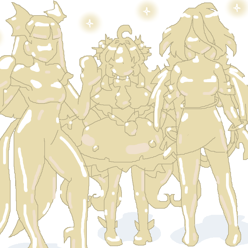 ゆうさんこんばんは♪ 全身銀色のリキッドメタル化したkofシリーズに登場するキングさんとヴァンパイアハンターシリーズにフェリシアさんとゼンレスゾーンゼロに登場する照さんの3人がギラギラに輝いて綺麗ですね♪ そうそう全身金色のゴールド化した64風ポリゴンのヴァンパイアハンターシリーズに登場するモリガンさんと名探偵プリキュア に登場するキュアアンサーさんと全力回避フラグちゃん!に登場する生存フラグさんの3人をリクエストできますでしょうか?全身金色のゴールド化した64風ポリゴンの3人のはのっぺらぼうの全身アップのデフォルメで手はミトン型ででっぱりがない部分はテクスチャーで全て省かれ絵のサイズは800と800でリクエストはカチコチお絵かき2でこちらもライブラリ登録お願いいたします。