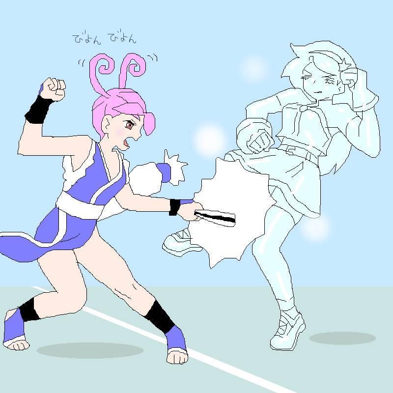 不知火舞さんコスチュームのゆう、麻宮アテナさん、かきました! 技の勢いで、髪がびょんびょん している様子です♪