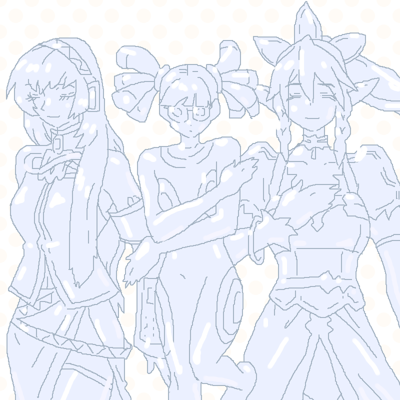 巡音ルカさん、擬人化したリリーラさん、リーファさん、かきました! 描いてるうちに、逆遠近法っぽい 構図になりました♪