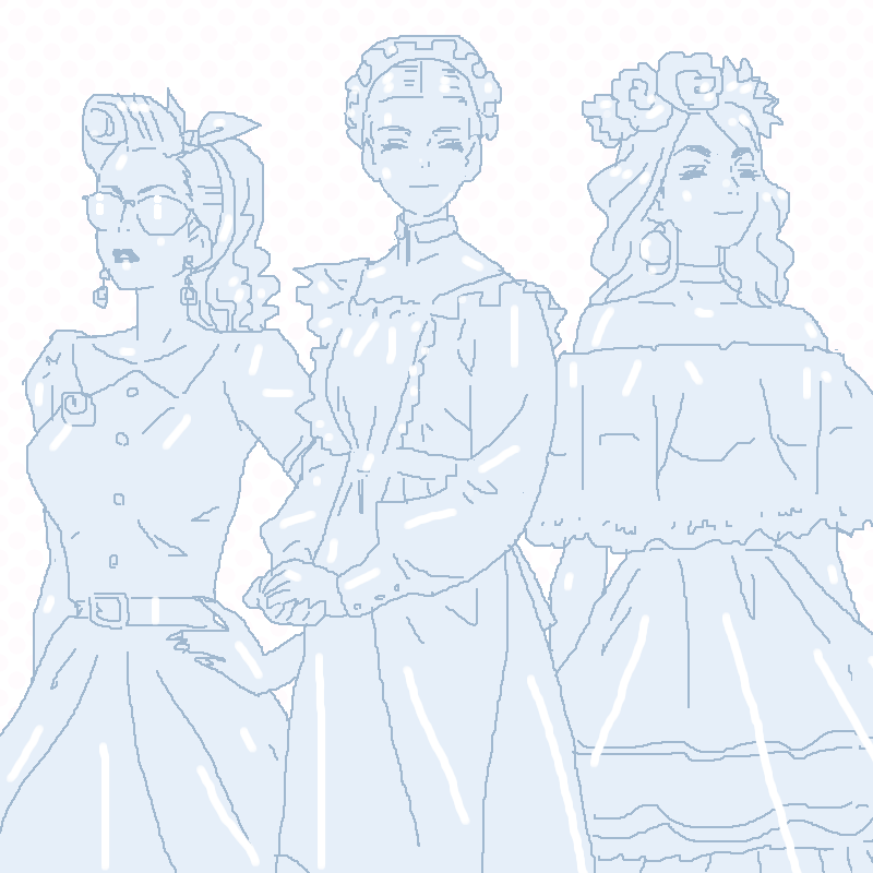アメリカ人女性とイギリス人女性とメキシコ人女性、かきました! アメリカの人は前回同様ロカビリー服、 イギリスの人はヴィクトリアンメイド服、 メキシコの人はチアパス州のドレスを かきました♪
