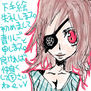 始めまして。 青林檎と申します。 絵チャ初心者なので下手糞ですが、 よければ仲良くして下さいw 暇つぶし相手にでもwww それでわ。