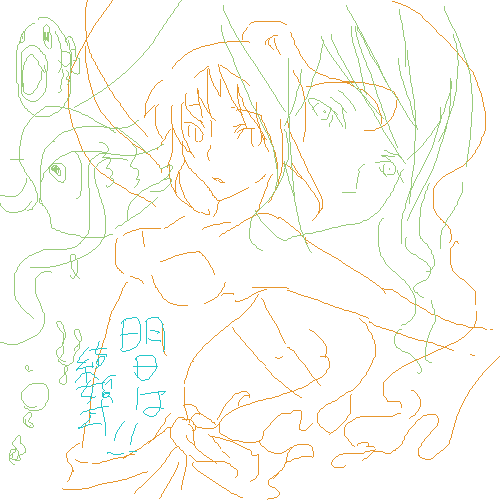 どわーーーお久しぶり〜−−−wwwww 元気そうで何よりす☆ おーてかなんか壁にブチ当たっちゃったんだけど、つい最近後ろからドンとおもいっきり押されて壁ごと突き抜けた事件がありまして、なんか知らぬ間になんだかんだで解決致しましたw(ニパー☆ とゆうわけで更に極めつけには、こんな超ステキングな絵をありがとす!!! てゆかこれ、この最強レヴェルにしてやっぱしマウスなワケ??(驚;;